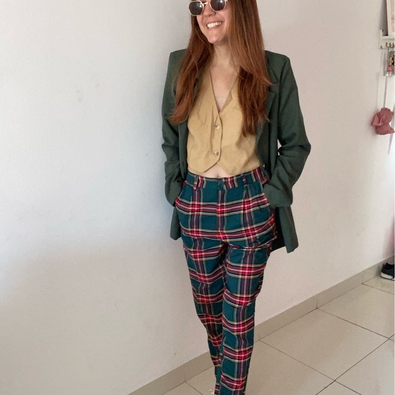Calça clearance quadriculada renner, Conjunto de Blazer e cal a xadrez Blazer Blazer feminino Looks clearance