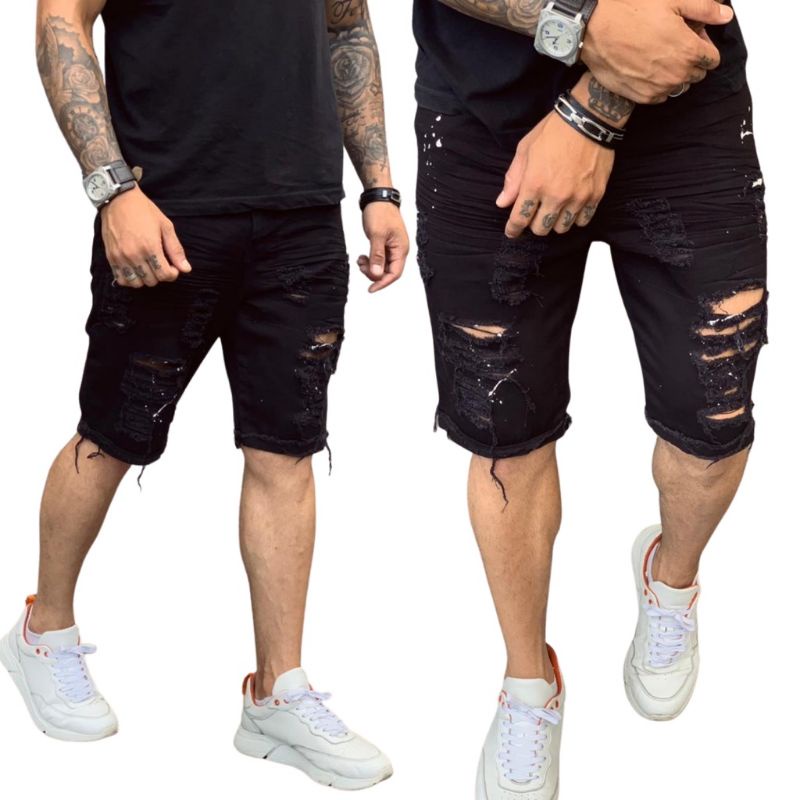 Short jeans preto clearance rasgado masculino, short jeans preto masculino rasgado em Promo o na Shopee Brasil 2024 clearance