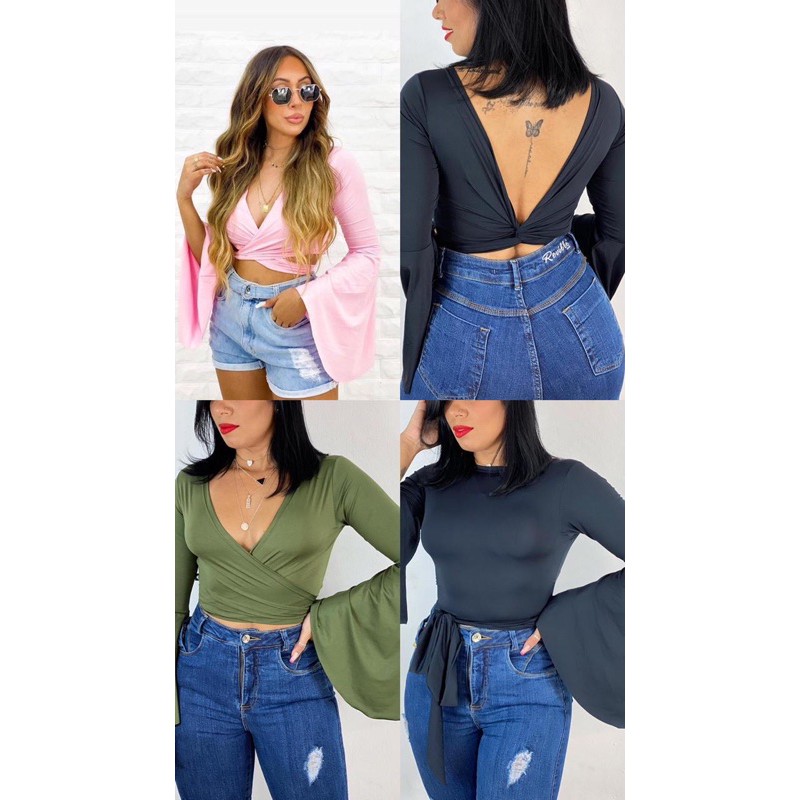 Cropped com manga clearance boca de sino, BE YOU BOUTIQUE clearance