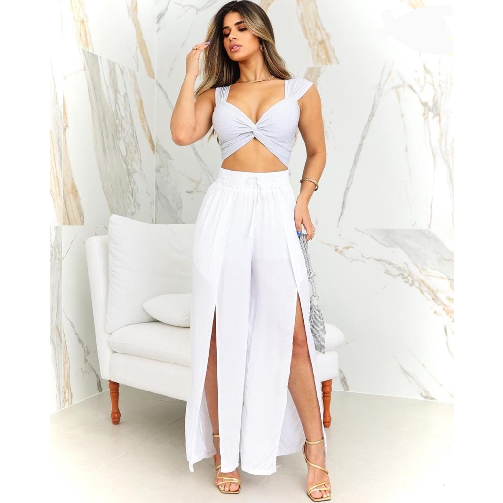 Cal a Pantalona com fenda. Cal a aberta na frente. Cal a Perna larga