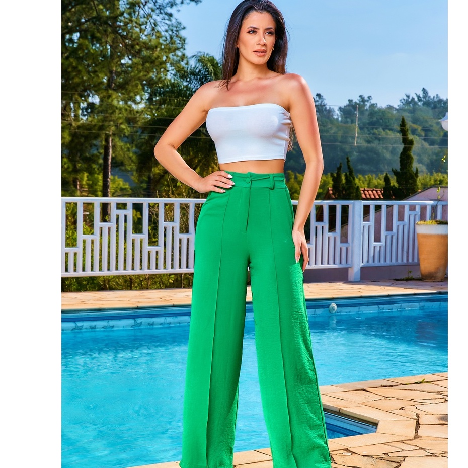 Cal a Pantalona com z per e botao Moda Feminina ref 1333 Shopee
