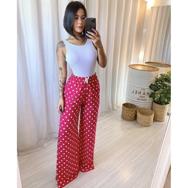 Calça clearance feminina poá, Cal a Feminina Pantalona Po Viscose Forrada Cintura Alta Compre clearance