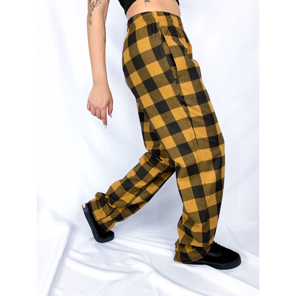 Cal a Xadrez Masculina Feminina Boca Larga Stretwear Flanela