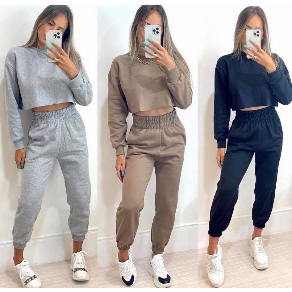 Conjunto Moletinho Cropped Cal a Moletom Feminino Lan amento