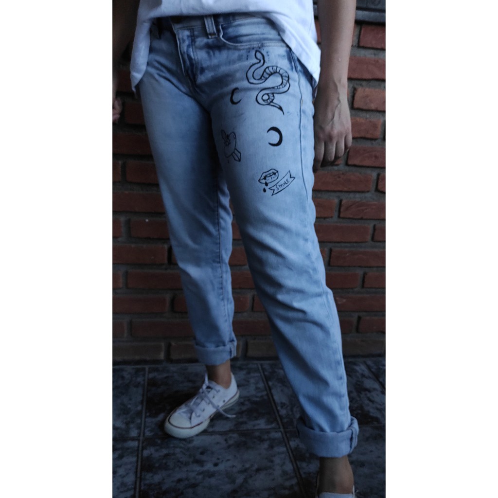 Calça clearance personalizada masculina, Cal a Jeans Vintage Reta Personalizada Foguinho Cal a Feminina Usado 81696215 enjoei clearance