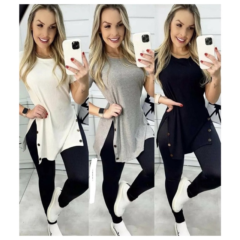 Blusa Canelado T shirt Camisa Manga Curta Mullet Veste Legging Tapa Bumbum Ver o