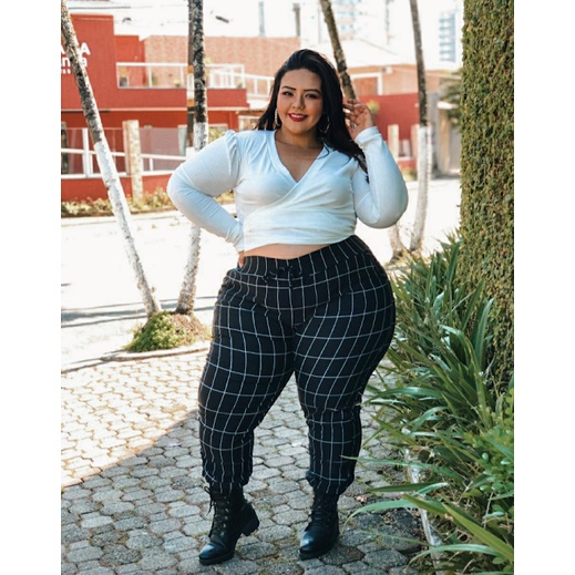 Calça xadrez plus clearance size, Conjunto Xadrez Plus Size ARRASE NO LOOK Conjunto Blusa e Cal a Xadrez e Preto Plus Size clearance