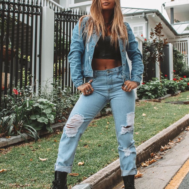 Cal a Boyfriend Jeans Destroyed Bordada Lady Rock Outros Moda e