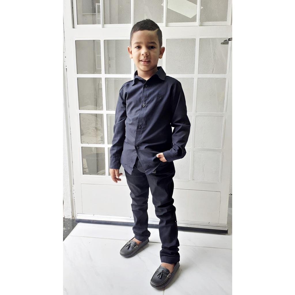 Conjunto Infantil Social Menino Masculino Camisa Cal a Preta