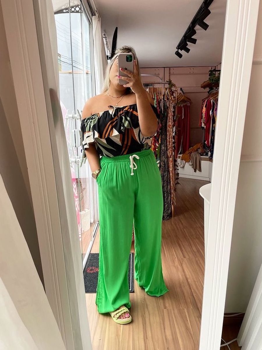Cal a Pantalona com Fendas Laterais Verde Lim o Cal a Feminina Nunca Usado 65747885 enjoei
