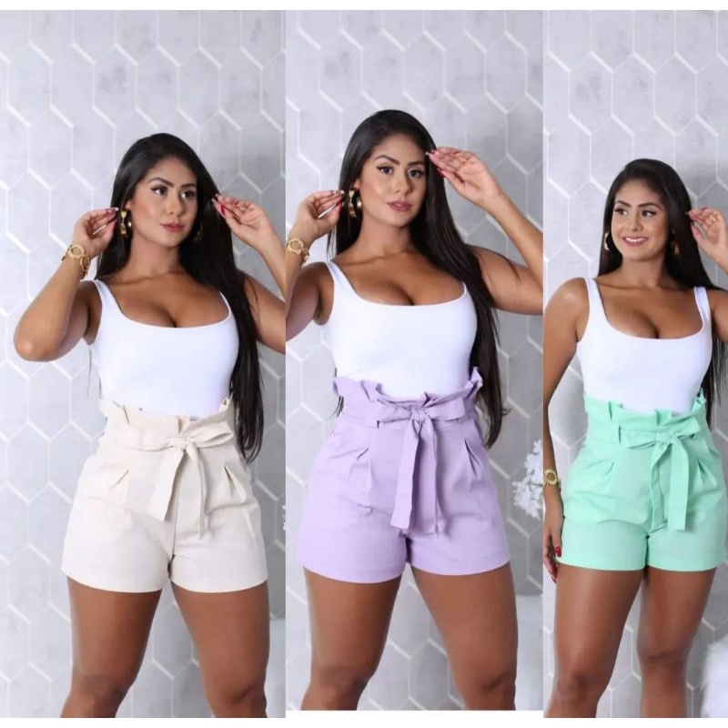 Shorts Cintura Alta Bengaline La o Roupas Femininas Pomo Shopee