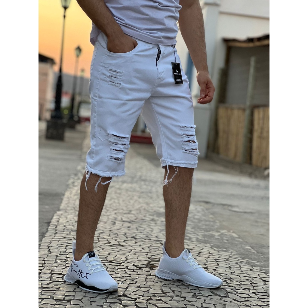 Calção clearance jeans masculino, Bermuda Jeans Masculino Slim Destroyed Dialogo Jeans GET FASHION clearance