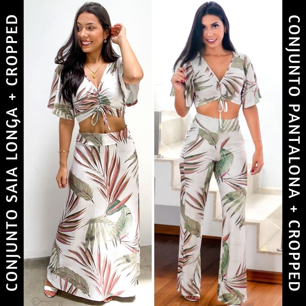 Conjunto Saia Longa com Cropped OU Cal a Pantalona com Cropped