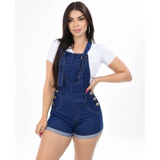 Macac o Jardineira Jeans Curto para Gr vidas Linda Gestante Linda