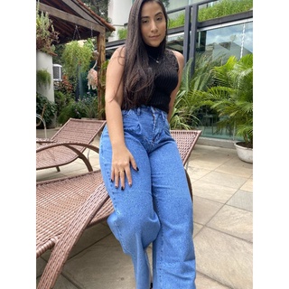 Cal a Jeans feminina Wide Leg Moda Folgada na perna com Corte Laser