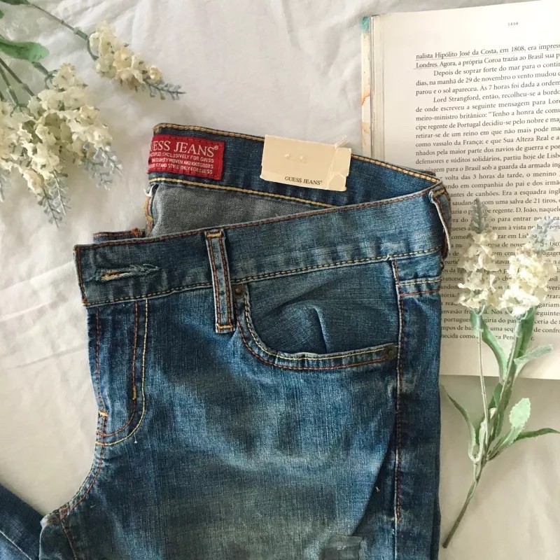 Calça clearance da guess, Cal a de ganga mom fit Guess clearance