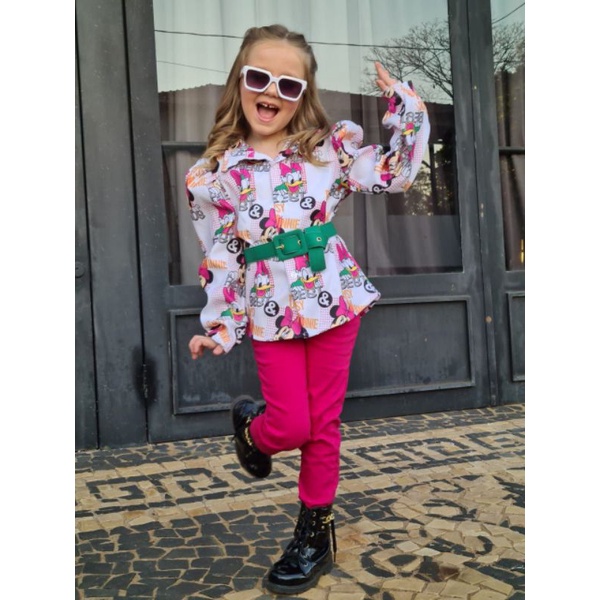 conjunto infantil menina disney cinto camisa cal a rosa 6 anos