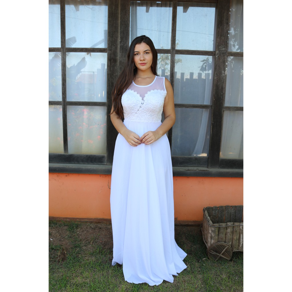 Vestidos branco longo para casamento clearance no civil, vestido de noiva casamento civil cart rio igreja praia campo clearance