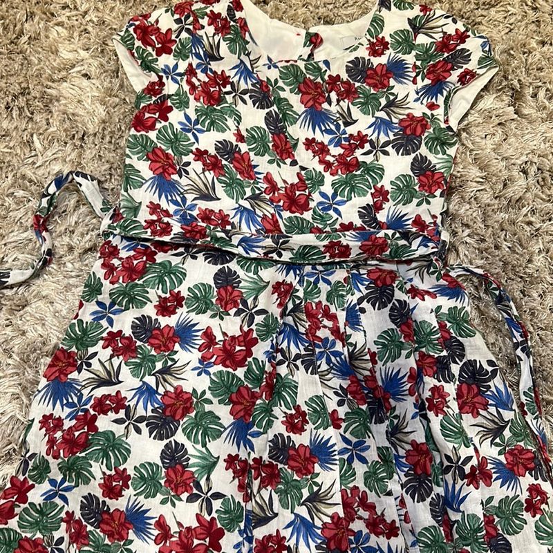 Lindo Vestido Branco Estampa Floral em Linho Richards Tamanho 2