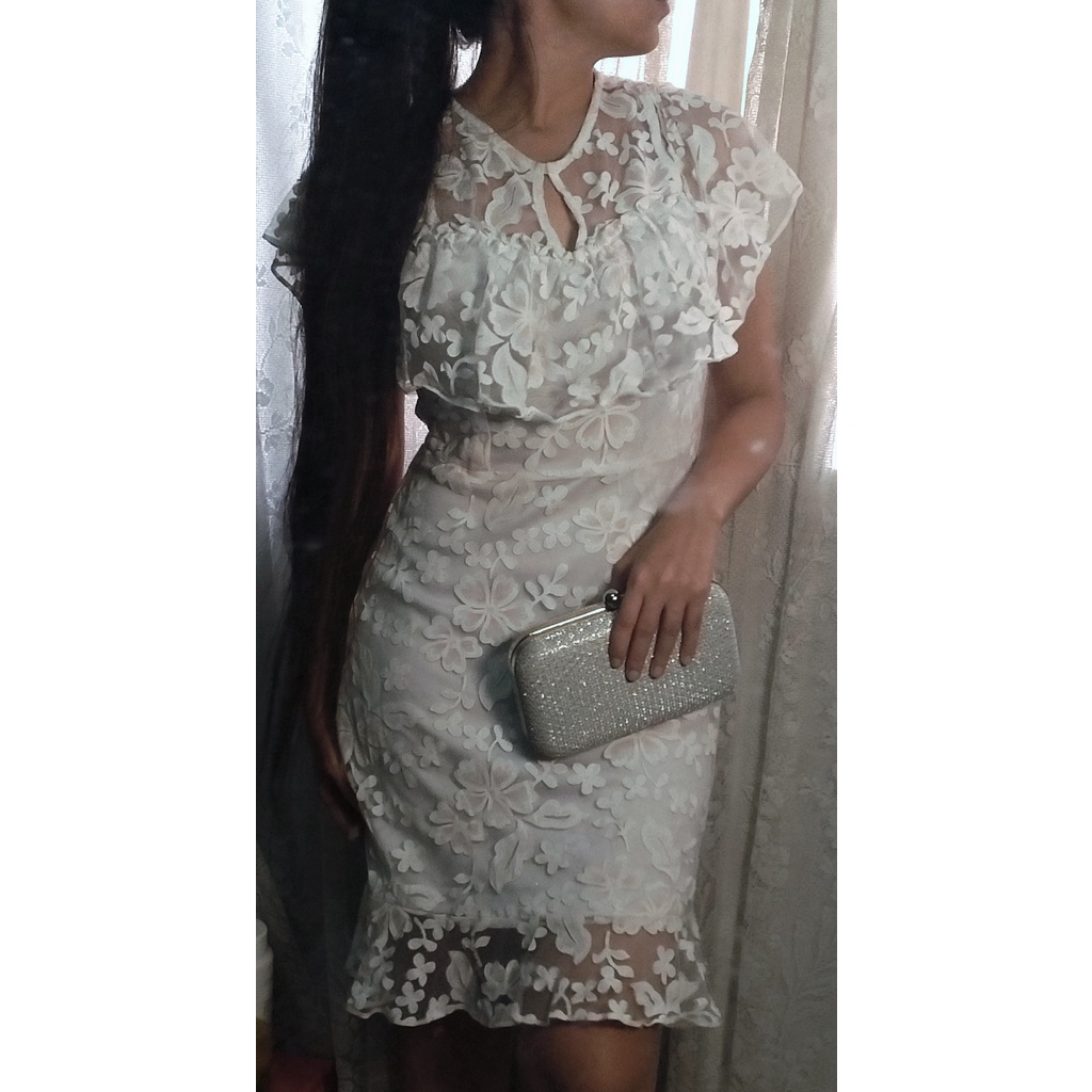 Vestido branco de renda para clearance ano novo, Vestido Branco Curto de Renda com Flores de Festa Ano Novo Casamento Civil clearance