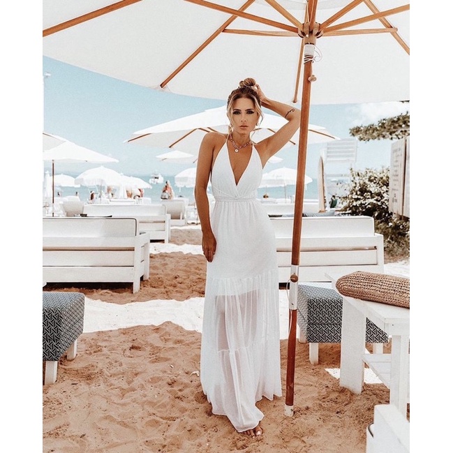 Vestido praia branco clearance longo