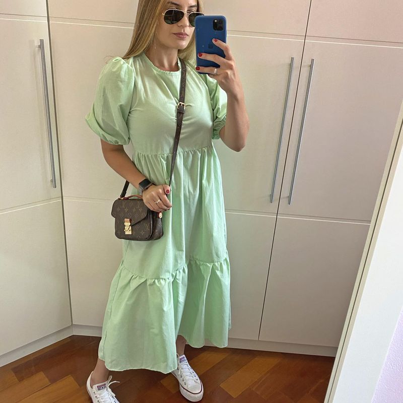 Vestido Midi Rodado Soltinho Fresco Manga Curta Ver o Inspira o
