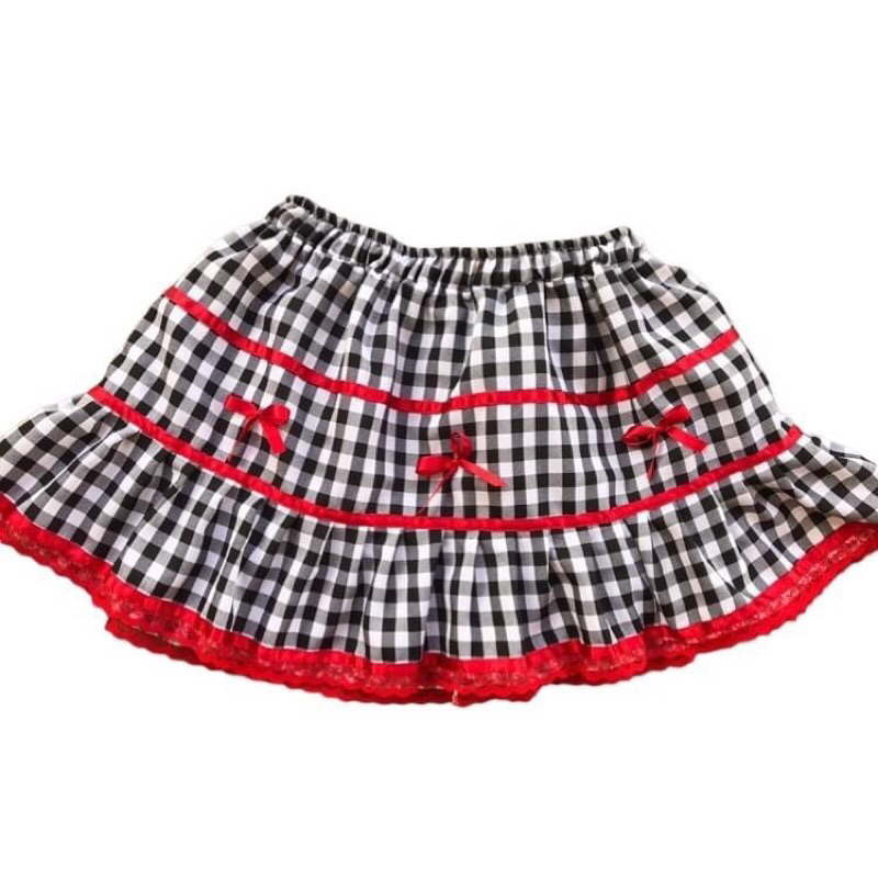 Saia Junino Caipira Xadrez Vermelho Preto Barbara Adulto Lux