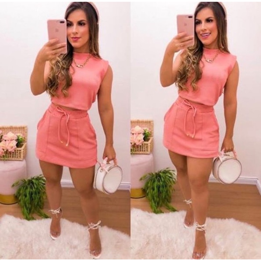Conjunto Blusa Feminina e Short Saia Malha Macia e Grossa Shopee