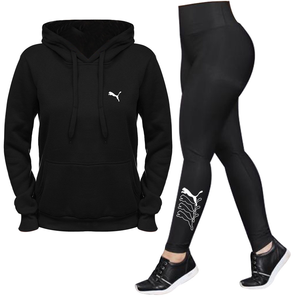 Conjunto Feminino Blusa de Moletom e Cal a Legging Esportiva Academia Corrida e Dia a Dia