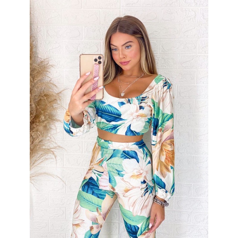 Conjunto florido estampado feminino