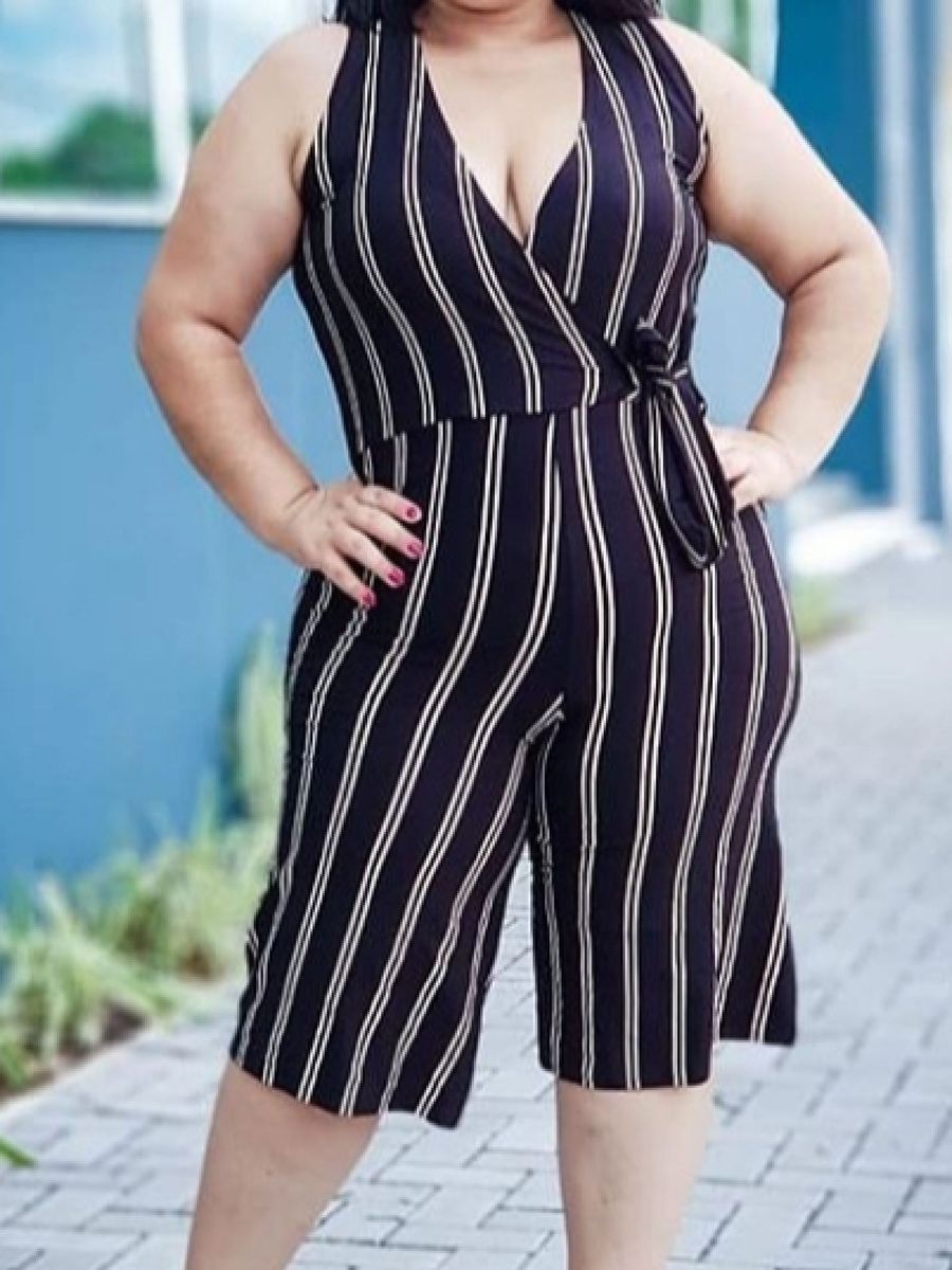 Macaquinho Feminino Plus Size Pantacourt Ciganinha Com Cinto
