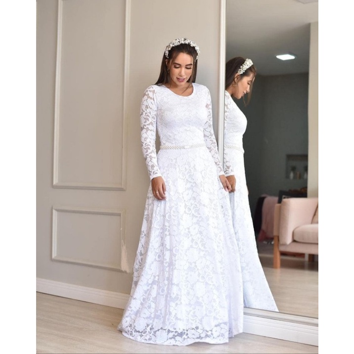 Vestido Longo Noiva casamento Civil moda Evangelica cinto