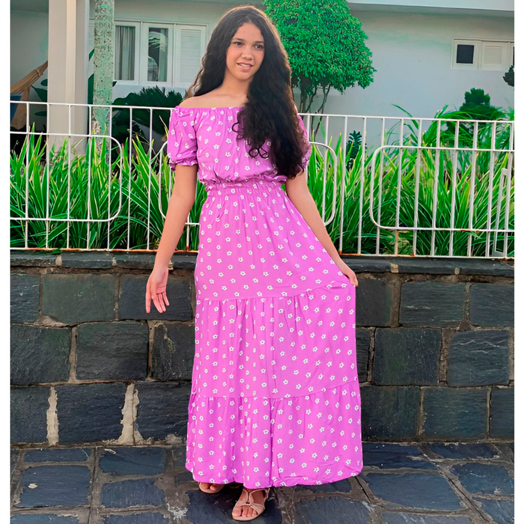 Vestido Longo Infantil Juvenil Festa Moda Evang lica Com Ciganinha Manguinha