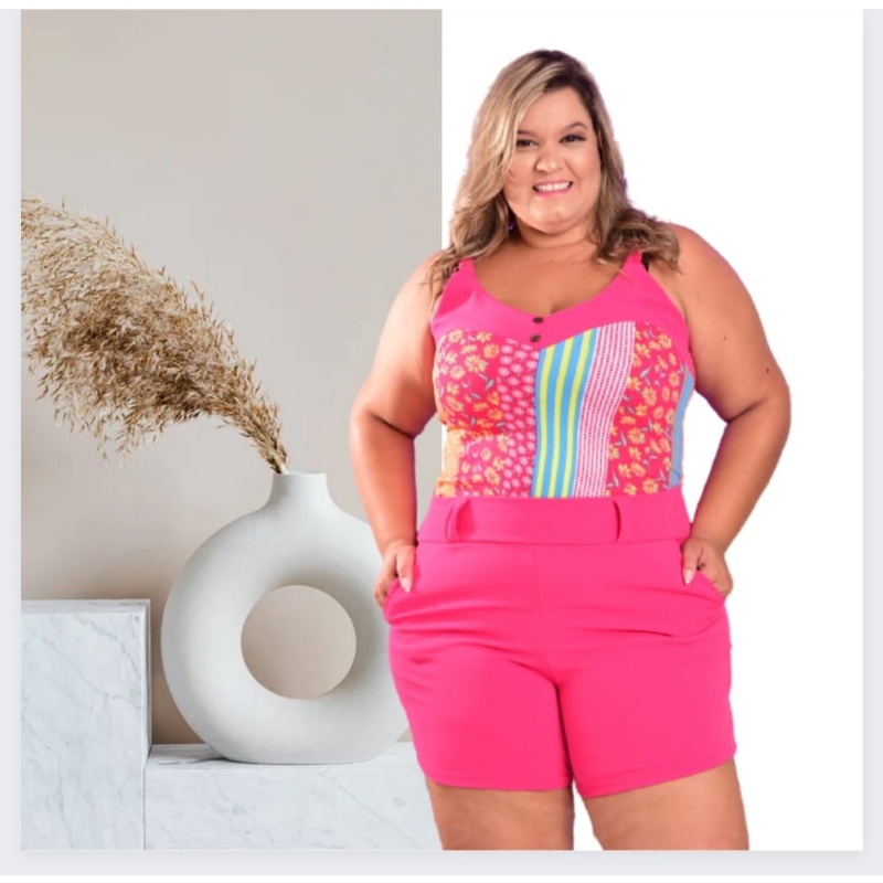 Blusa rosa plus clearance size, Conjunto Plus Size Rosa Short e Blusa clearance