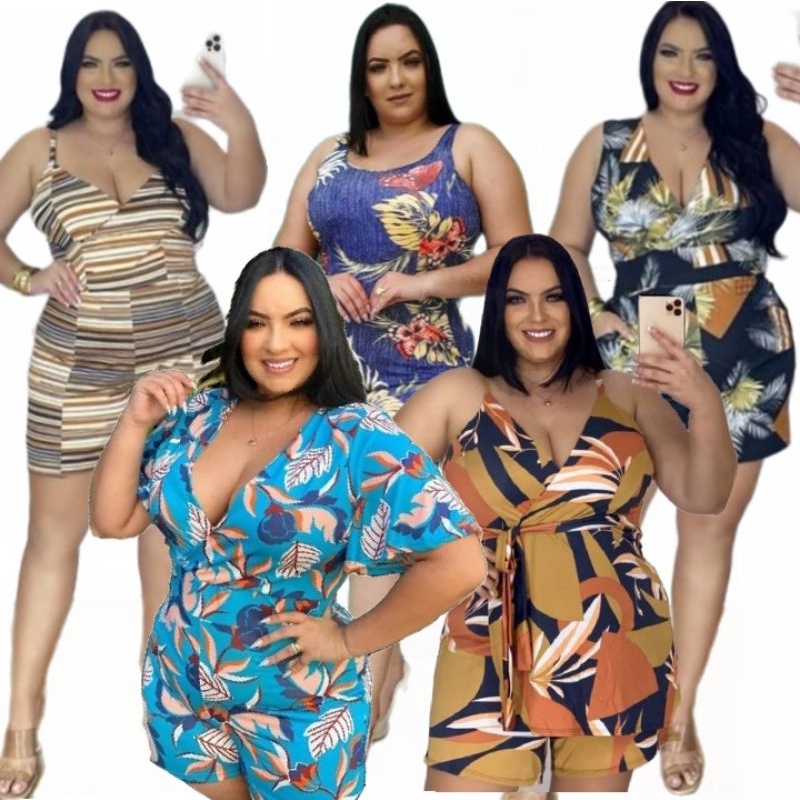 Macaquinho Plus size kit 5 macac o curto atacado revenda Shopee