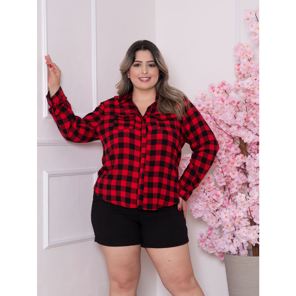 Camisa Plus Size Feminina Xadrez Manga Longa Marisa
