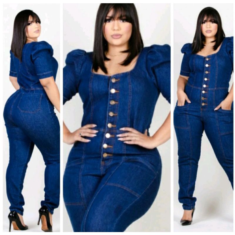 Macacao jeans comprido clearance plus size