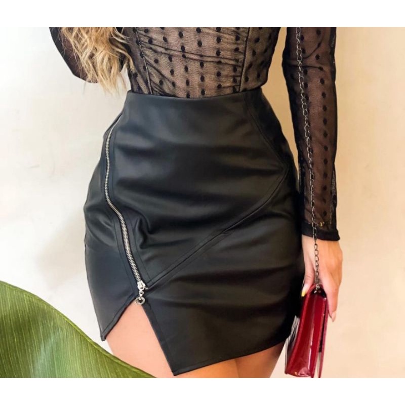 Saia de couro clearance sintetico curta, SAIA FENDA Z PER PRETA CURTA CINTURA ALTA COURO FAKE ECOL GICO CORINO COURINO COURO SINT TICO MODA BLOGUEIRA FABRICANTE PROMO O ATACADO TEND NCIA clearance