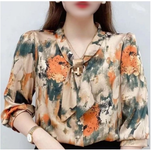 Blusas De Chiffon Estilo Ver o Feminina Camisas Femininas Casuais Meia Manga Com Colarinho Estampada