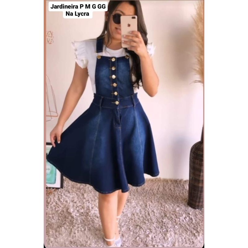 Jardineira jeans saia clearance rodada, Jardineira Jeans Saia MercadoLivre clearance