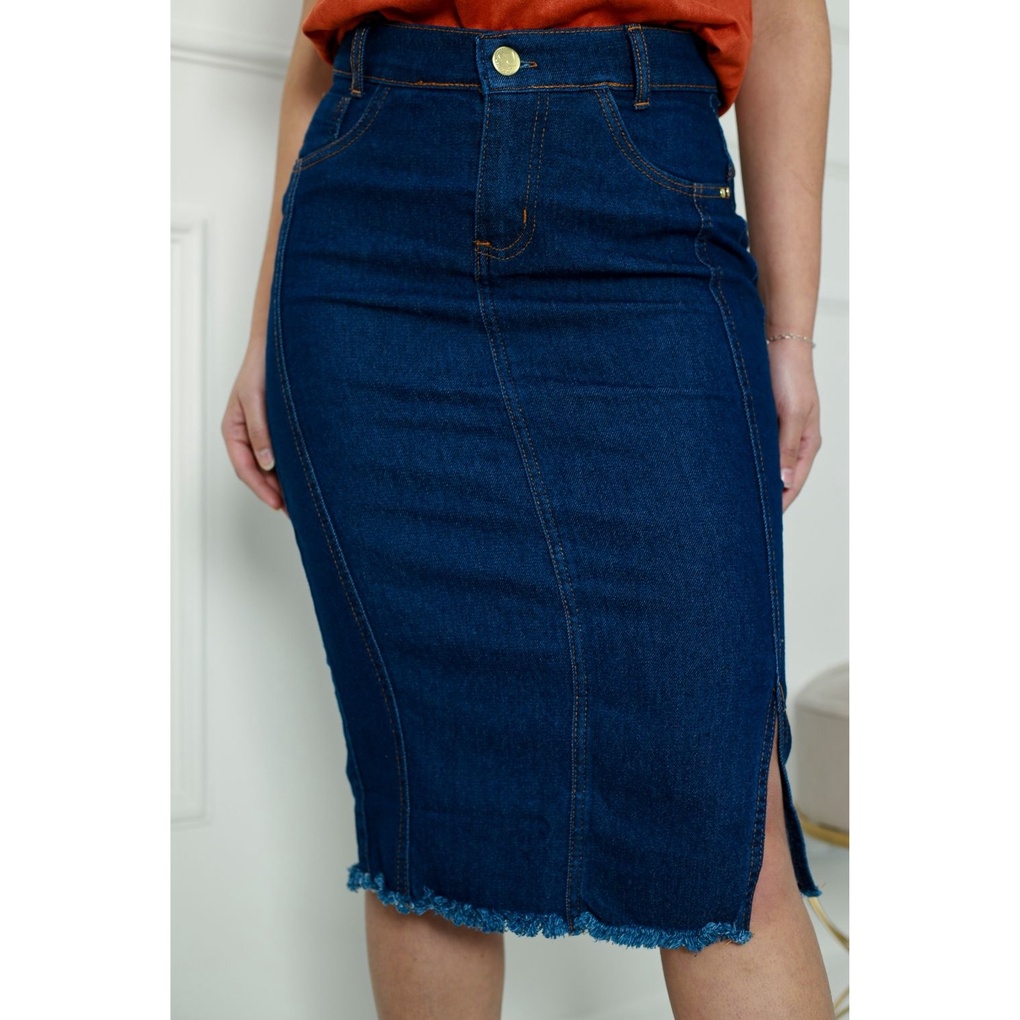 Saia Midi com Fenda Plus Size Azul Escuro 787 Shirts