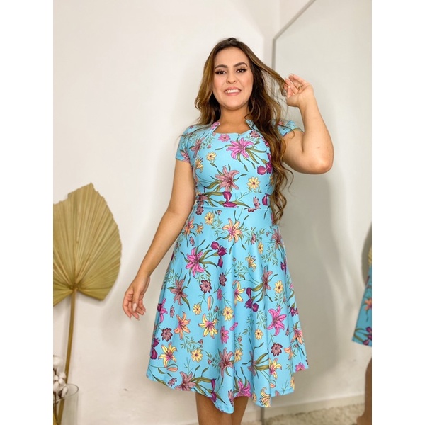 Vestido clearance evangélico estampado, Vestido evangelico moda crist feminina Plusize gode m di estampado floral clearance