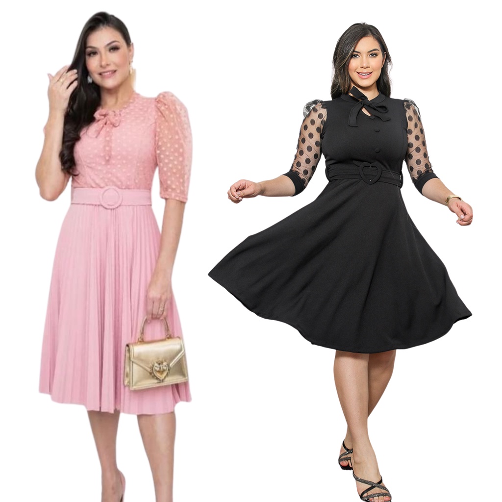 Kit 2 Vestidos Moda Evang lica Cinto Princesa Midi Super Oferta