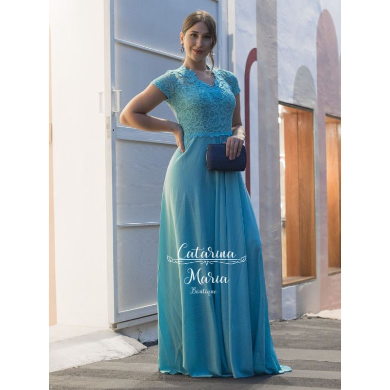 Vestido de madrinha evang lico padr o EF azul tifany congresso