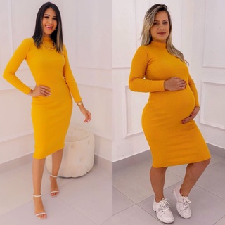 Vestido Ribana para Gr vida Gola Alta Manga Longa Shopee Brasil