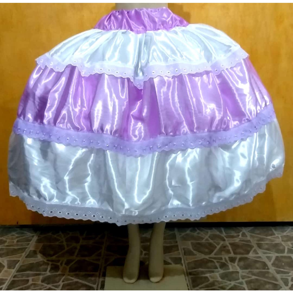 SAIA DE CETIM MULTICOLOR BRANCO E LIL S COM BORDADO INGL S ER