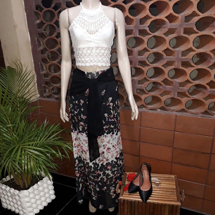 Saia Longa Estampada Nina Verde Lima Zinzane Loja de Roupas Femininas Bazar At 70 OFF