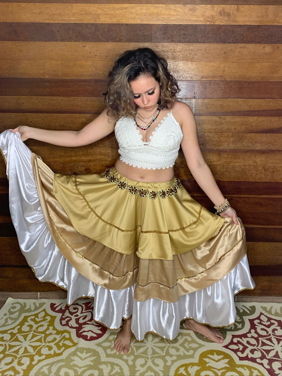 Saia Cigana Dourada e Branca Saia Feminina Propria Nunca Usado 62694032 enjoei