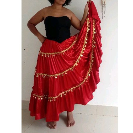Saia Cigana conjunto 1 Saia de Cetim e Cinto de Tecidos Fino