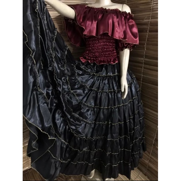 SAIA CIGANA PRETA EM CETIM Trajes Dona Ana